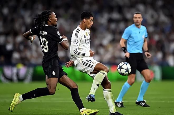 第57分钟,贝林厄姆射入的唯一一球,也是靠着一个相对比较“幸运”方式拿到的。在禁区中维尼修斯闪转腾挪比较吃力,尤文也已经部署好了多人的防守阵容,而他的射门该巧不巧击中了立柱之后的,被后套上的贝林厄姆机敏的捕捉到了机会的、完成了射门。