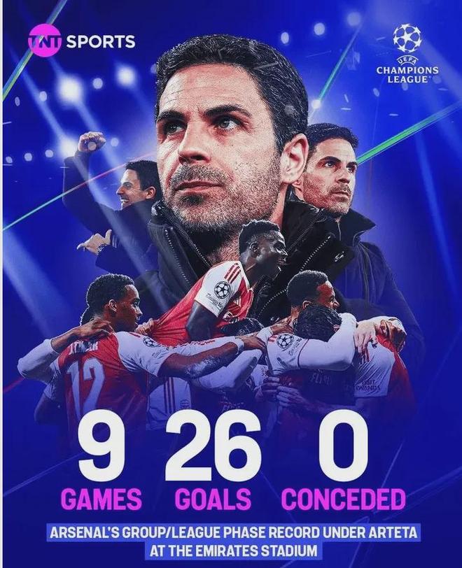 真是越看越胆战心惊……阿尔特塔执教阿森纳以来,欧冠第一阶段(含小组赛)主场9场比赛,全部拿下说实话还能想象,但9场全部零封取胜,这难度也太大了……完全不给对方任何机会啊。